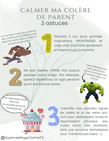 gérer la colère parentale lors des interventions auprès des enfants n'est pas une tâche facile, mais c'est une compétence qui peut être développée. Et ultimement, rappelons-nous que nous ne sommes que des humain.e.s imparfait.e.s qui font de leur possible et que nos enfants nous aiment parfaitement ainsi.